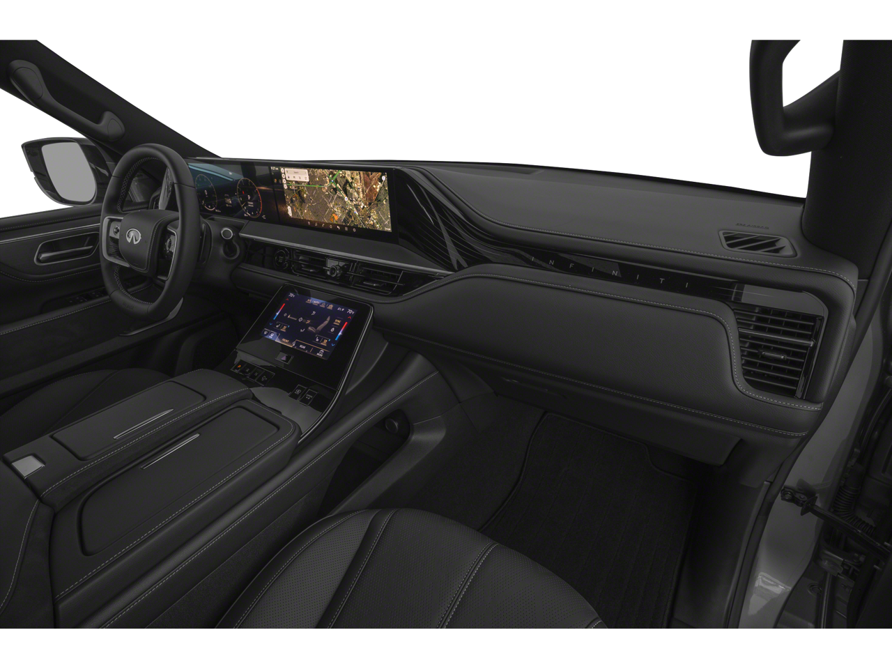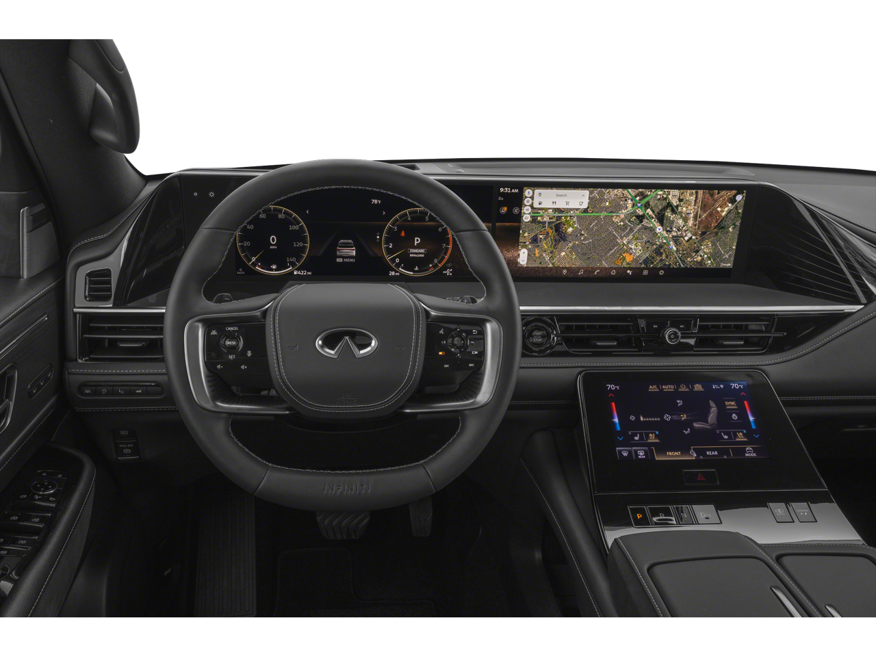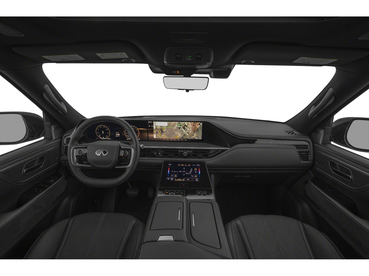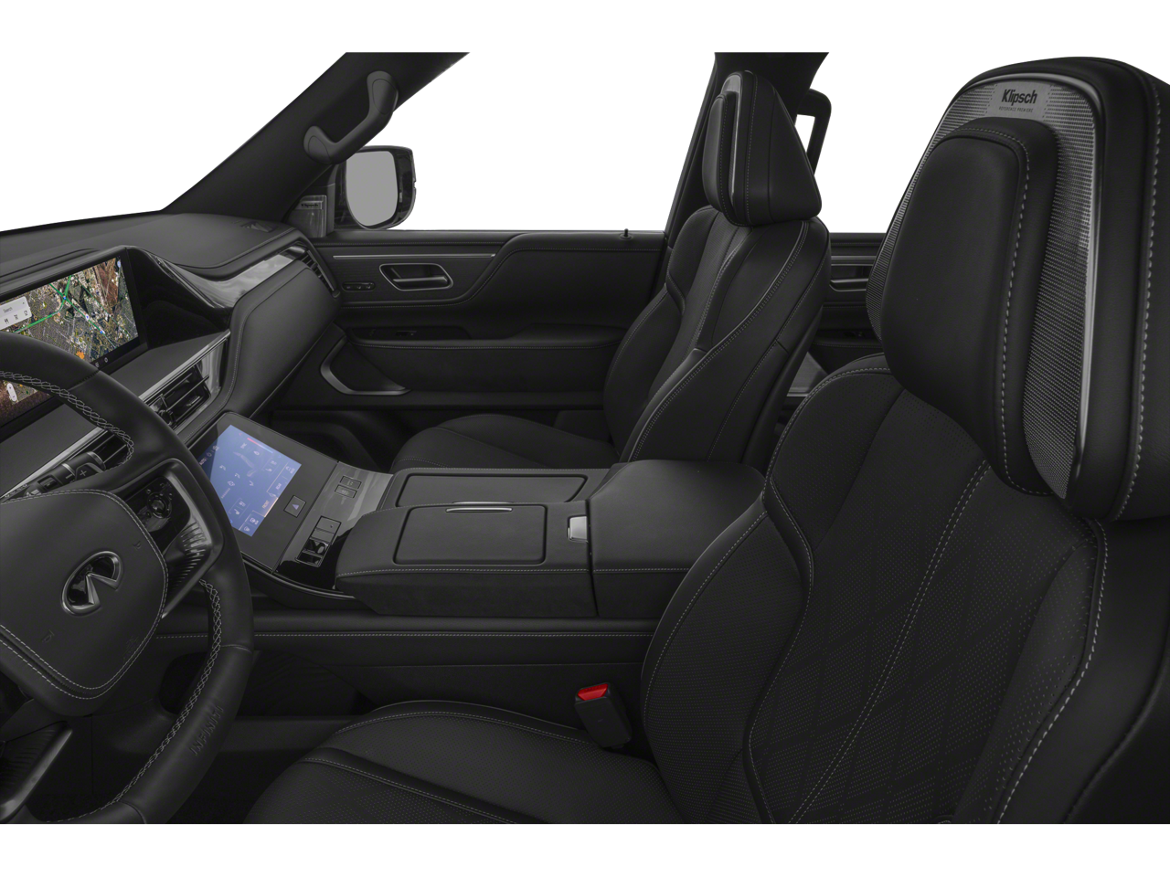 - Radio: Klipsch Reference Premiere Audio System -inc: 24 speakers w/Active Sound Enhancement (ASE), 3D audio, demo mode, individual audio headrest speakers for driver and front passenger, 14.3" infotainment screens w/front control panel, Google built-in w/navigation, Amazon Alexa w/hotword, Bluetooth® hands free phone and audio streaming, wireless Apple CarPlay and Android Auto, hybrid radio, SiriusXM w/360L, INFINITI InTouch services, 5G Wi-Fi hotspot and 2 USB type-C media ports w/iPod interface